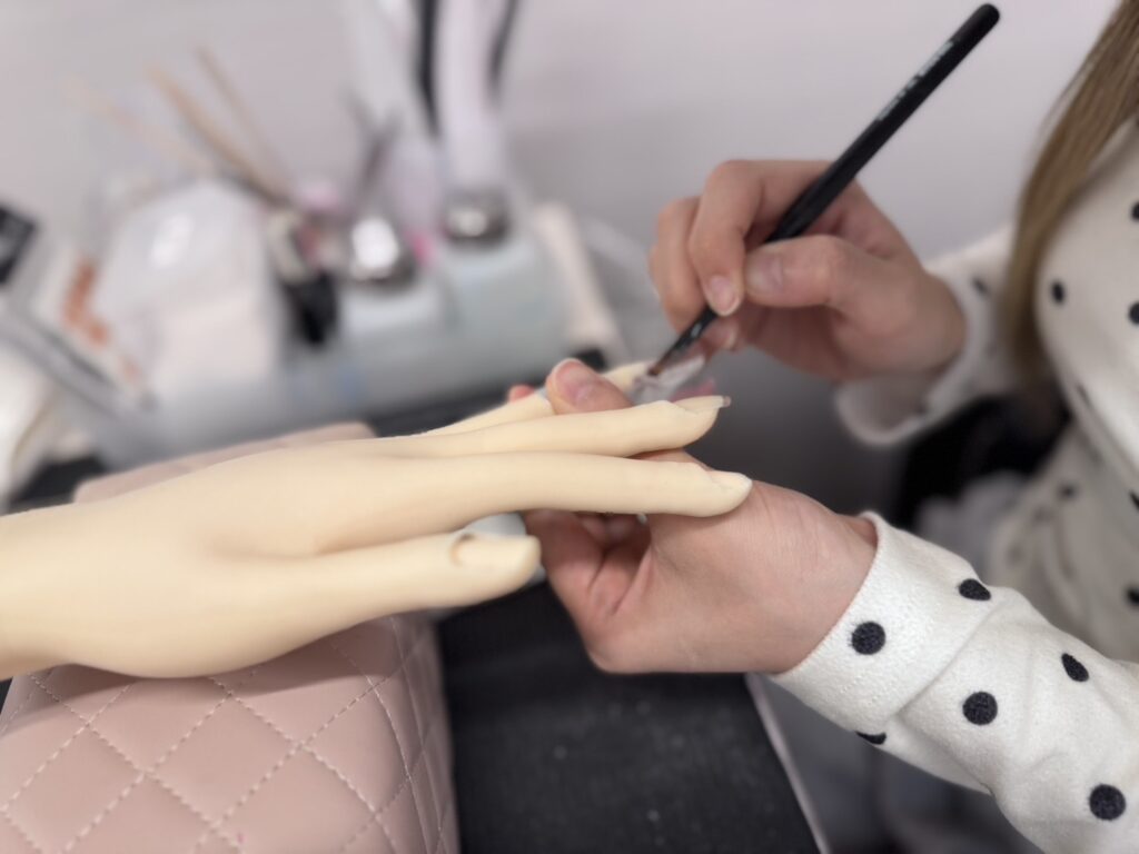 今日はネイリスト技能検定試験2級の課題である、ピンクポリッシュのレッスンを行いました。