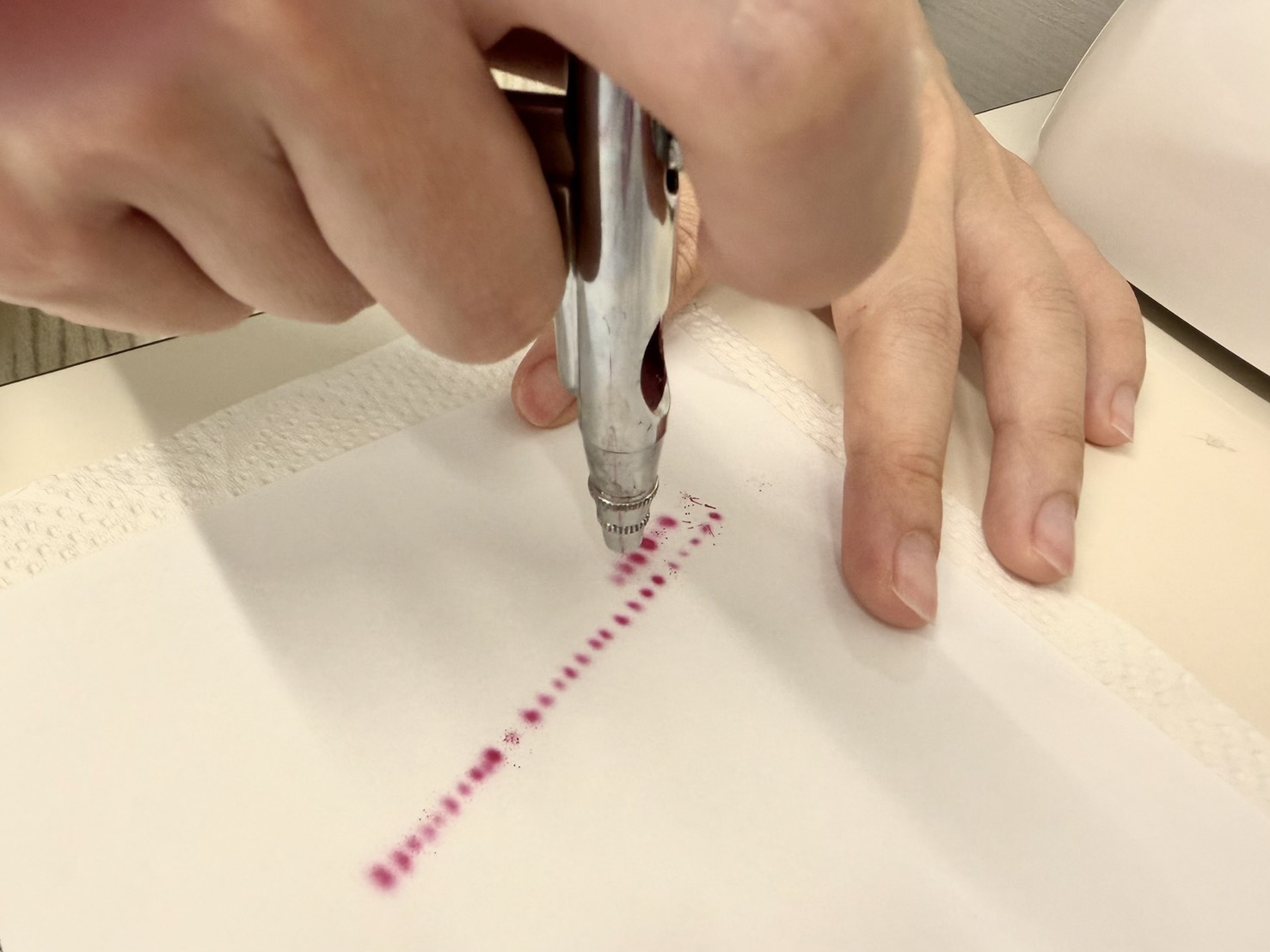 エアブラシは、空気量とインクの出し方のバランスを一定に保つことがとても重要です。
