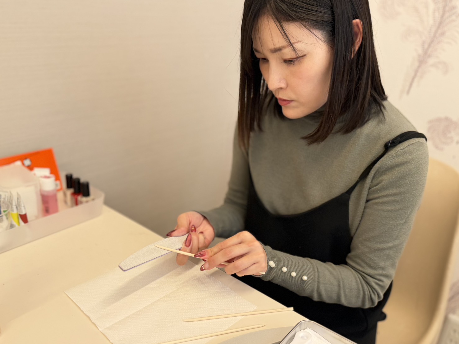 本日はまず、ネイリスト技能検定試験の要項を一つひとつ確認し、試験当日の流れや注意事項について理解を深めていただきました。