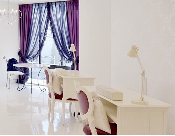 白を基調とした清潔感あふれる内装に、レース柄の床やドレープカーテン、シャンデリアなど上品で落ち着いた空間です。授業では、講師と生徒様の距離が近く、細やかな技術指導で丁寧にサポートいたします。憧れのサロンにいるような華やかさと、集中して学べる落ち着きとの両方を兼ね備えた環境です。高い技術と感性を身につけ、ネイリストへの夢を叶えることを、お約束いたします。